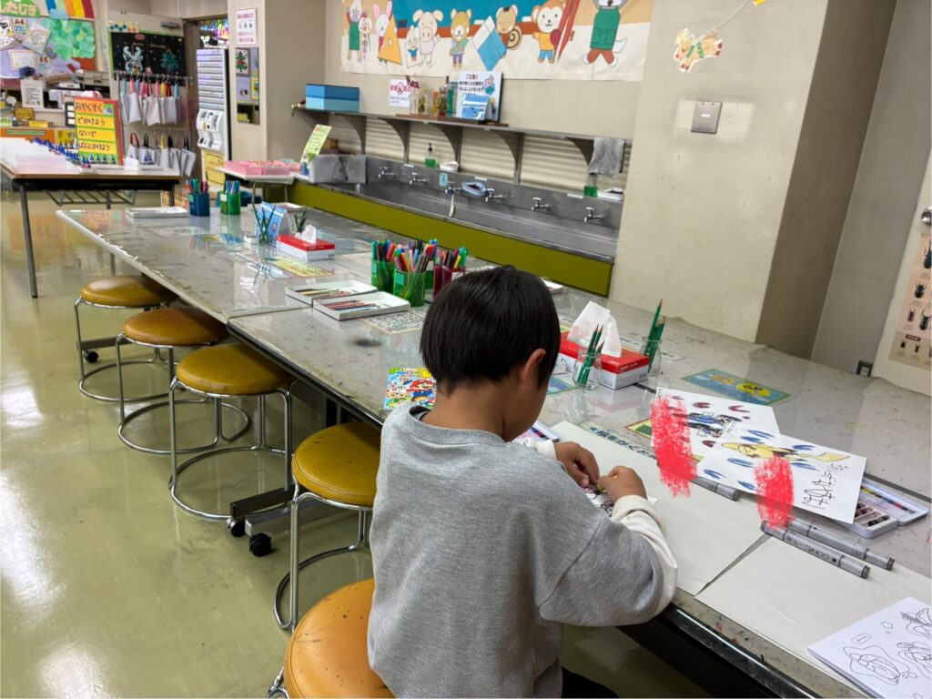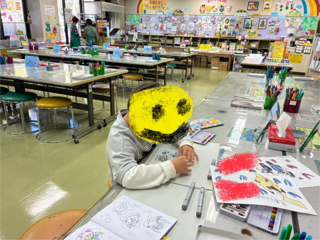 ちなみに私は息子の好きなキャラクターの塗り絵を持参して作りました⭐︎(マスキングテープも持っていくと途中でズレることなくかけるのでおすすめです)