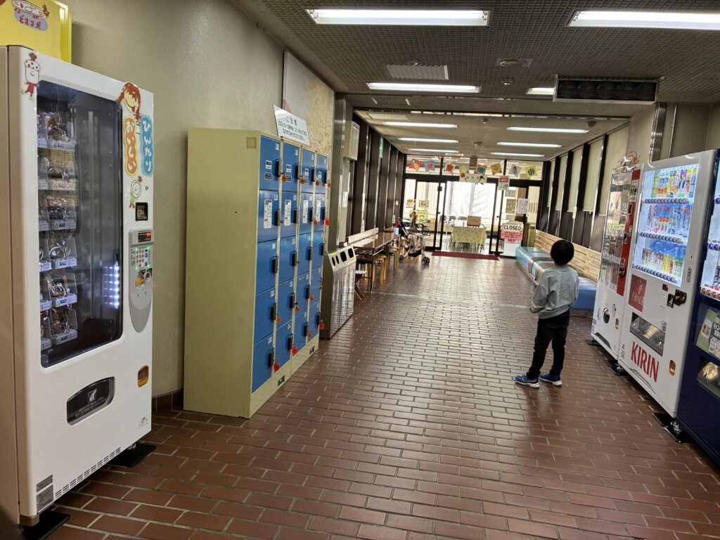 パンやアイス、ジュースの自販機があり、奥にも食堂があります♬(今回は平日だったので食堂は営業しておらず、食堂の机は解放されていました)