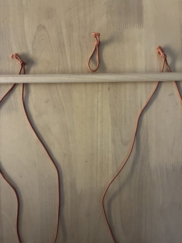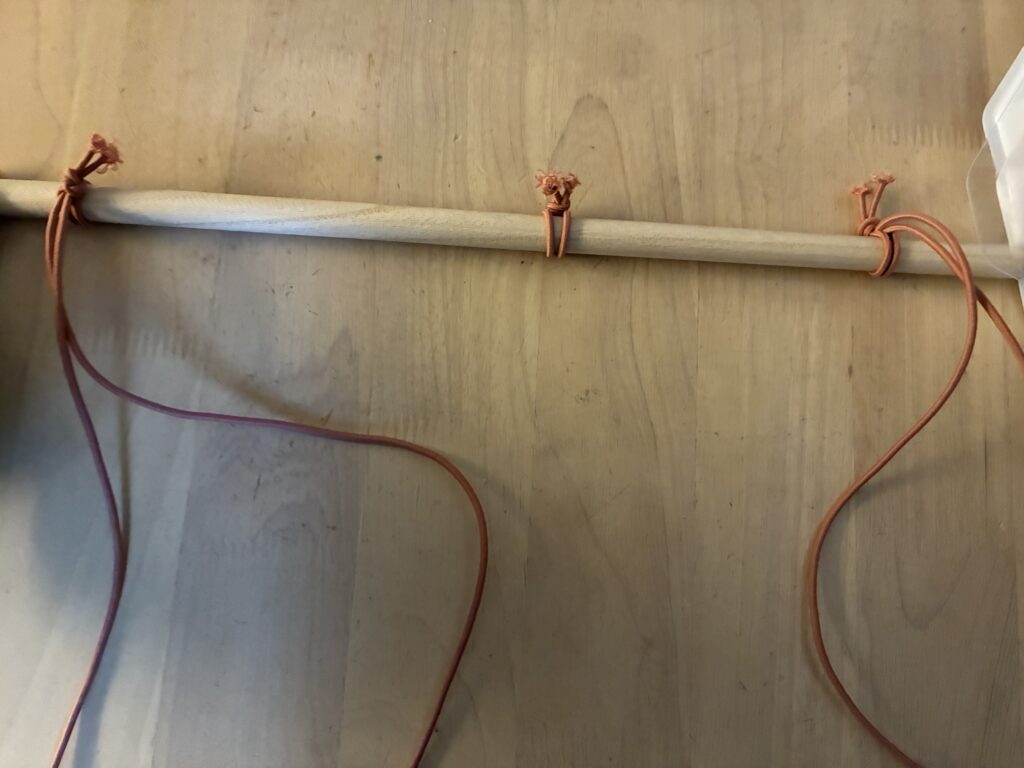 紐の長さはスタジアムをぐるっと巻いた時、少し小さめになるくらいの長さです。(ズボラすぎて長さ測らずやりました)